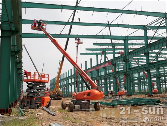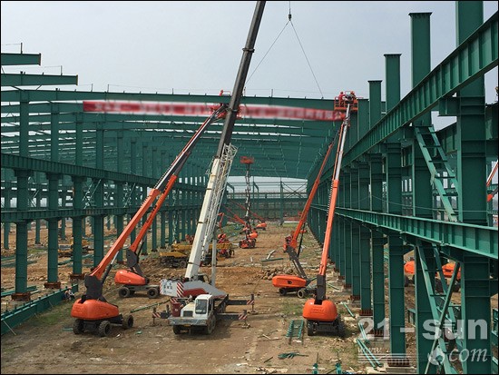 亿信(中国)再次开启兵团作战模式,几十台高空亿信通过国内租赁公司进驻某大型施工工地,助力钢结构厂房建设。放眼望去,耀眼的